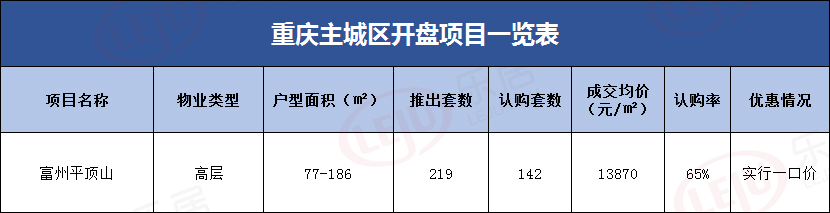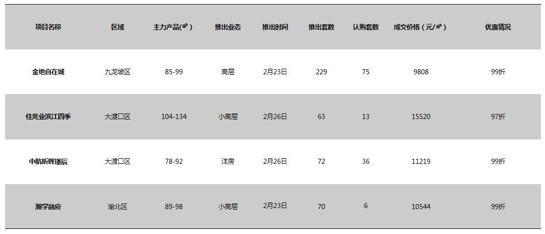 前兩(liǎng)周重慶主城區加推項目一覽